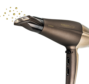 - Ионизация (ionic технология — Scarlett Advanced tourmaline) – защита волос от пересушивания и обезвоживания, делает ваши волосы гладкими и блестящими, а в холодное время года не дает им электризоваться и спутываться. Также наличие ионизатора в фене будет полезно девушкам с непослушным типом локонов, так как ионизация при сушке волос, сделает их мягкими и податливыми для укладки.