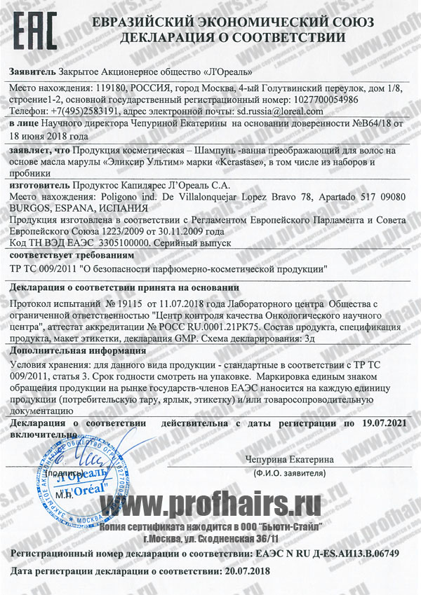 Нанести необходимое количество шампуня на влажные волосы. Вспенить, затем тщательно смыть водой. Для максимального результата, используйте также маску из серии Elixir Ultime.