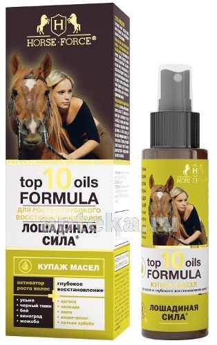ЛОШАДИНАЯ СИЛА TOP 10 OILS FORMULA КУПАЖ МАСЕЛ ДЛЯ РОСТА И ГЛУБОКОГО ВОССТАНОВЛЕНИЯ ВОЛОС 100МЛ