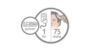 Машинка для стрижки может работать в беспроводном режиме для максимального удобства и свободы движений. Мощный литий-ионный аккумулятор обеспечивает до 120 минут работы после 1 часа зарядки. Питание от сети и от аккумулятора.