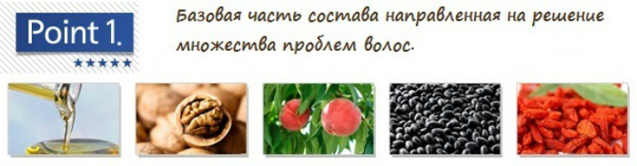 В состав продукта включены очищенный конский жир, экстракты грецкого ореха, персиковых листьев, черной сои и китайского финика, которые способны в комплексе поддерживать водно-липидный баланс кожи головы и волос, способствуют их быстрому восстановлению, делают их более здоровыми и свежими.