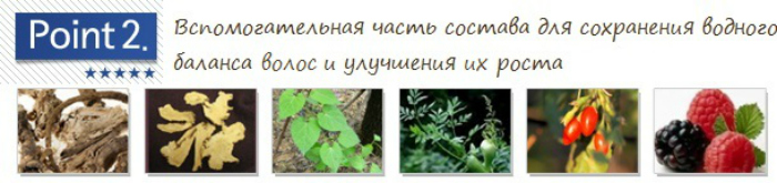 11 экстрактов лекарственных трав укрепляют структуру волоса, активизируют «спящие корни», стимулируют рост волос. Также оказывают успокаивающее и ранозаживляющее действие.