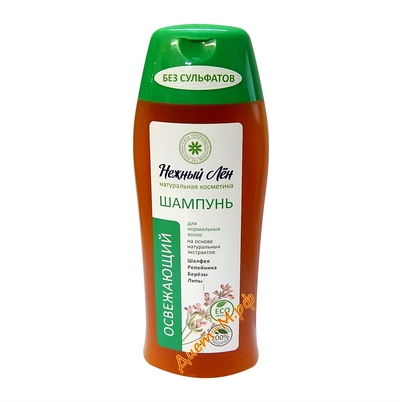 Шампунь «Освежающий» серии «Нежный Лён» не содержит сульфатов и других синтетических моющих ингредиентов.