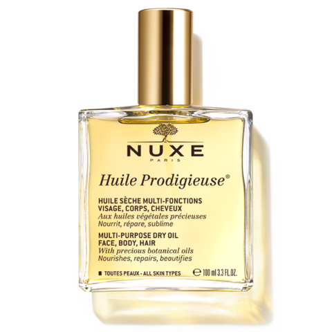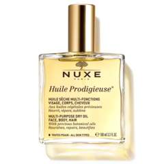 NUXE — всемирно известный бренд органической косметики, основанный в далеком 1957 году фармацевтом из Франции. Главные достоинства данного бренда — абсолютная натуральность и 100% эффективность в борьбе за сияние кожи. Линия Prodigieux ежедневный уход за лицом, телом и волосами для всех типов кожи с 20 лет. Сухое масло для лица, тела и волос Huile Prodigieuse Внешний вид: Масляная текстура от прозрачного до светло-жёлтого цвета и ароматом цитруса, магнолии и ванили. Специальные особенности: Содержит 98% натуральных ингредиентов. Не содержит силиконы. Комплекс растительных масел питает, восстанавливает и смягчает кожу лица и тела, улучшает качество волос. Обладает антиоксидантными свойствами. Корректирует растяжки. Результат: Увлажненная, сияющая кожа лица, тела и волосы.