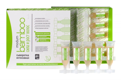 Курс рассчитан на месяц использованияИсточник статьи: http://belraispb.ru/shop/2695/desc/syvorotka-intensivnaja-sila-i-rost-volos-serii-modum-bamboo
