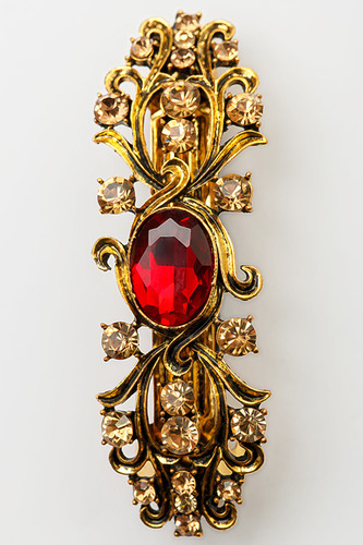 В заколке, стилизованной под молнию, удалось соблюсти баланс между практичностью и торжественностью. Ненавязчивый декор в виде ряда из прозрачных миниатюрных стразов Swarovski органично рифмуется с блеском полированного металла цвета серебра. Аксессуар .