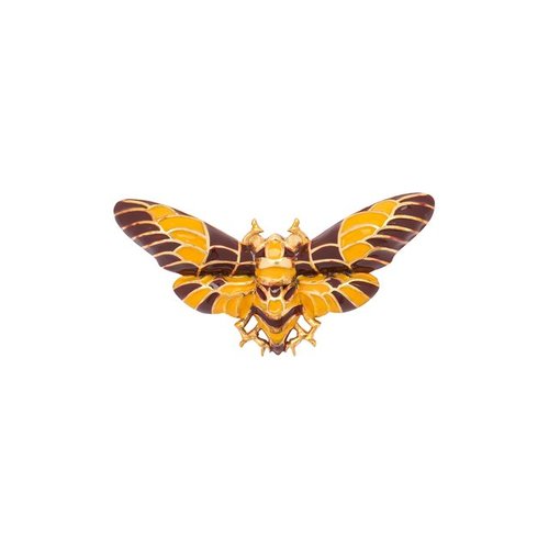 Для изготовления заколки в виде шершня из коллекции Insecta использовали легкое серебро с покрытием 24-каратным золотом. Мастера марки практически точно повторили внешний вид насекомого вплоть до окраса, который имитировали с помощью желтых и коричневых.