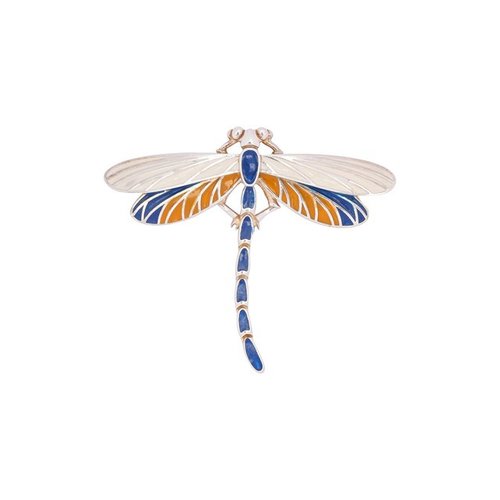 Аксессуары из коллекции Insecta выполнены в виде различных насекомых. Небольшую заколку сделали практически точной копией стрекозы с ажурными крыльями. Модель изготовили из прочного серебра 925 пробы и украсили синими и оранжевыми эмалевыми вставками.