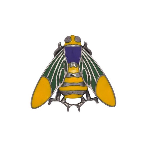 Небольшая заколка, напоминающая пчелу, вошла в коллекцию Insecta, вдохновленную миром насекомых. Для изготовления аксессуара использовали прочное серебро 925 пробы. Модель украсили вставками из синей, зеленой и желтой эмали с характерным глянцевым блеском.