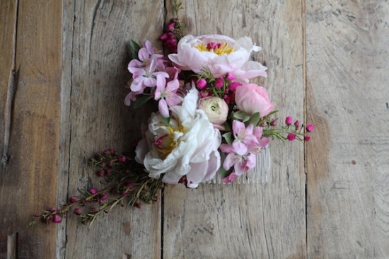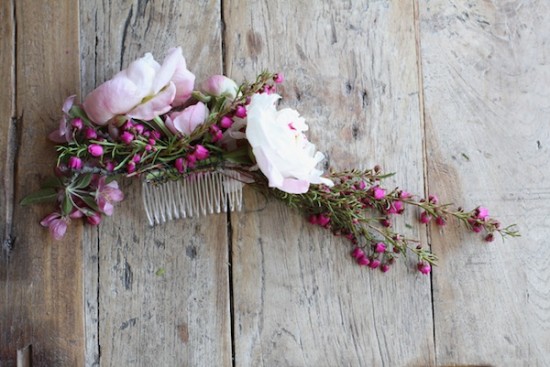 Заколки или гребни из живых цветов делают образ элегантным и роскошным.